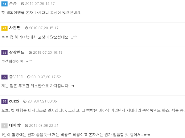 여행을 다녀 온 후 느낀점입니다. 1. 먹을 거 안가져가도, 충분하더라. 2. 사장님이 우리 입맛 잘 아시더라. 3. 짐이 많을 필요가 없더라. 4. 짐은 적을 수록 좋더라. 백팩 하나 정도해도 되더라. 5. 공항…